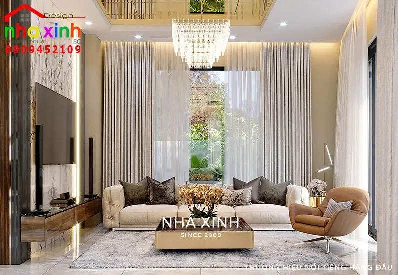 Mẫu 2: Mẫu thiết kế nội thất phòng khách hiện đại khu vực Thảo Điền